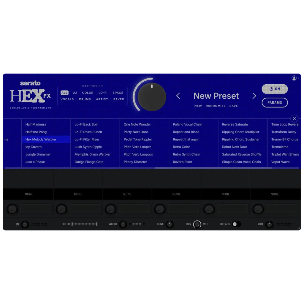 The overarching Hex Dial unlocks new sonic dimensions, shifting effects and parameters independently to create intricate, ever-evolving layers. With every turn, discover unexpected sounds that reshape your mix, relieving rich, hidden textures– just like magic.