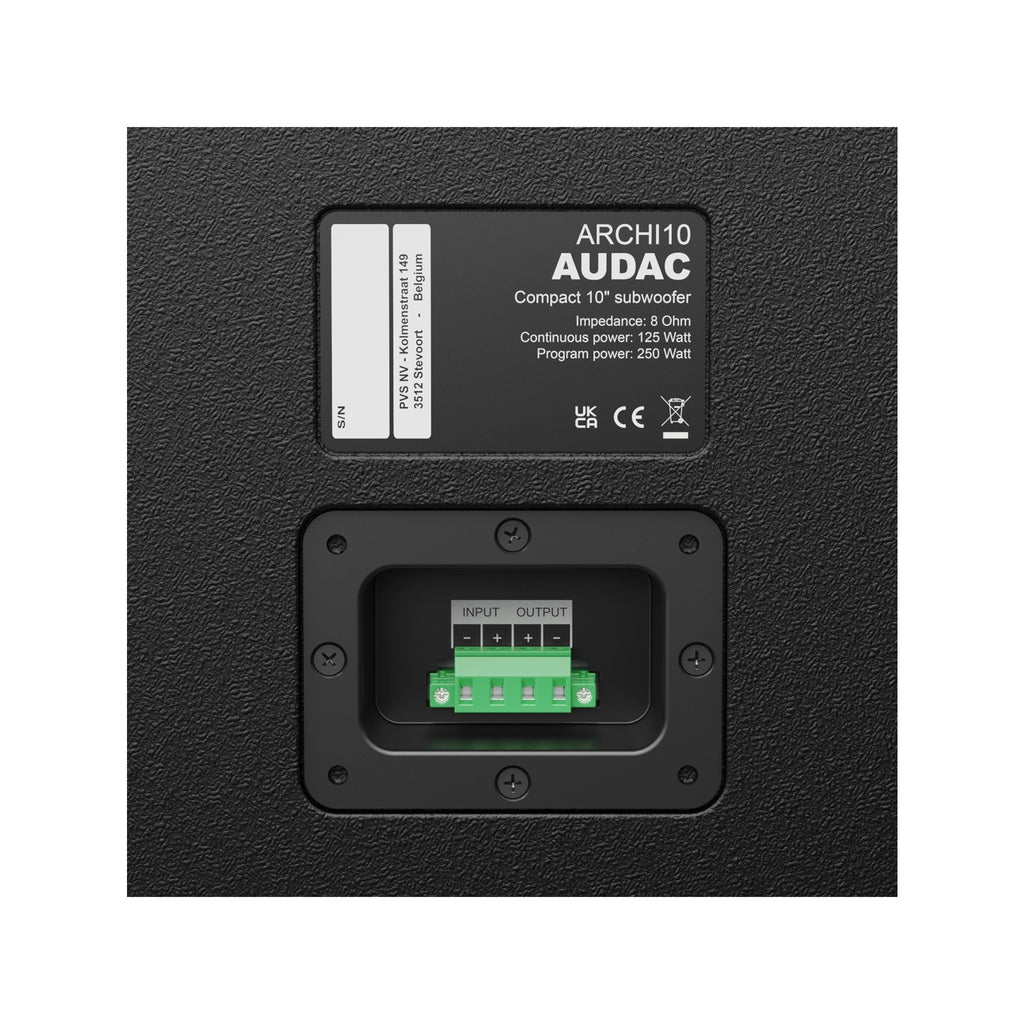 Request an ETA on: Audac ARCHI10 - Ultra Compact 10in Architectural Sub - Black