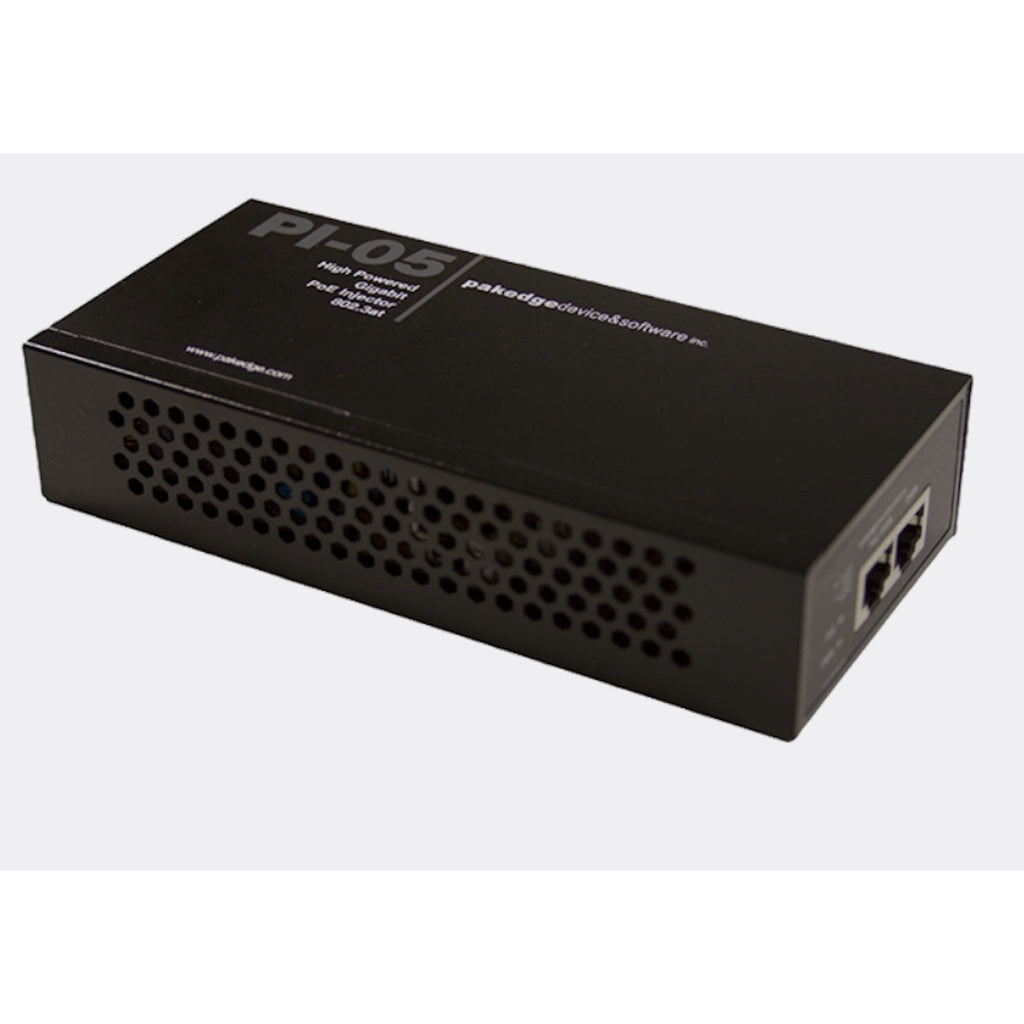 The PI-05 is a high-powered Gigabit IEEE 802.3at-compliant PoE+ injector which powers PoE or PoE+ compliant devices. The PI-05 automatically senses the amount of power required by receiving devices, only providing power to PoE-capable devices – removing the possibility of shorts and surges. PoE+ technology eliminates the need for a nearby electrical outlet to power network devices such as touch panels, the Pakedge WK1 wireless access points, Pakedge PoE powered switches (SE5EP, SE8EP, SE5P2EP) IP cameras, and VoIP phones.